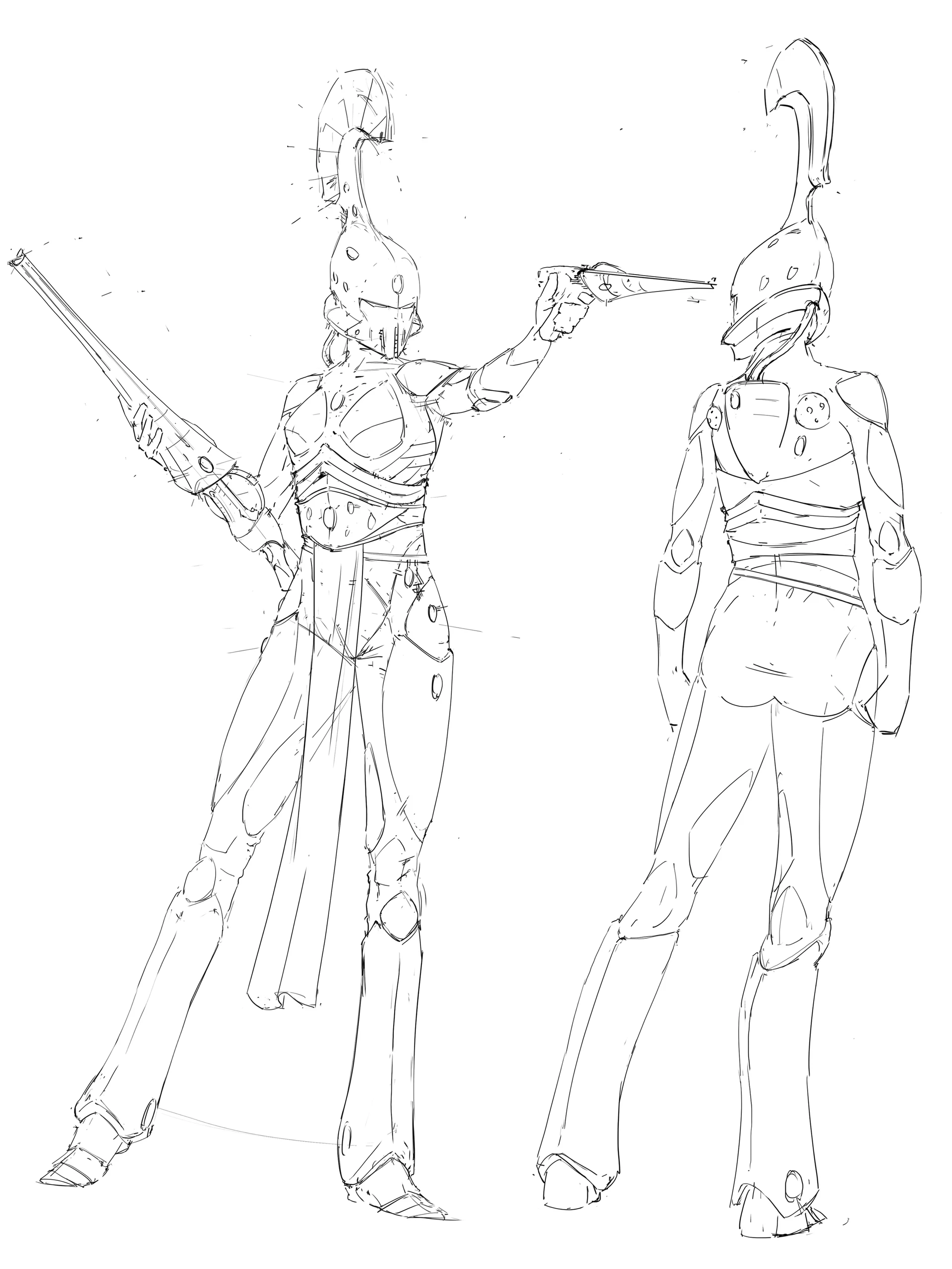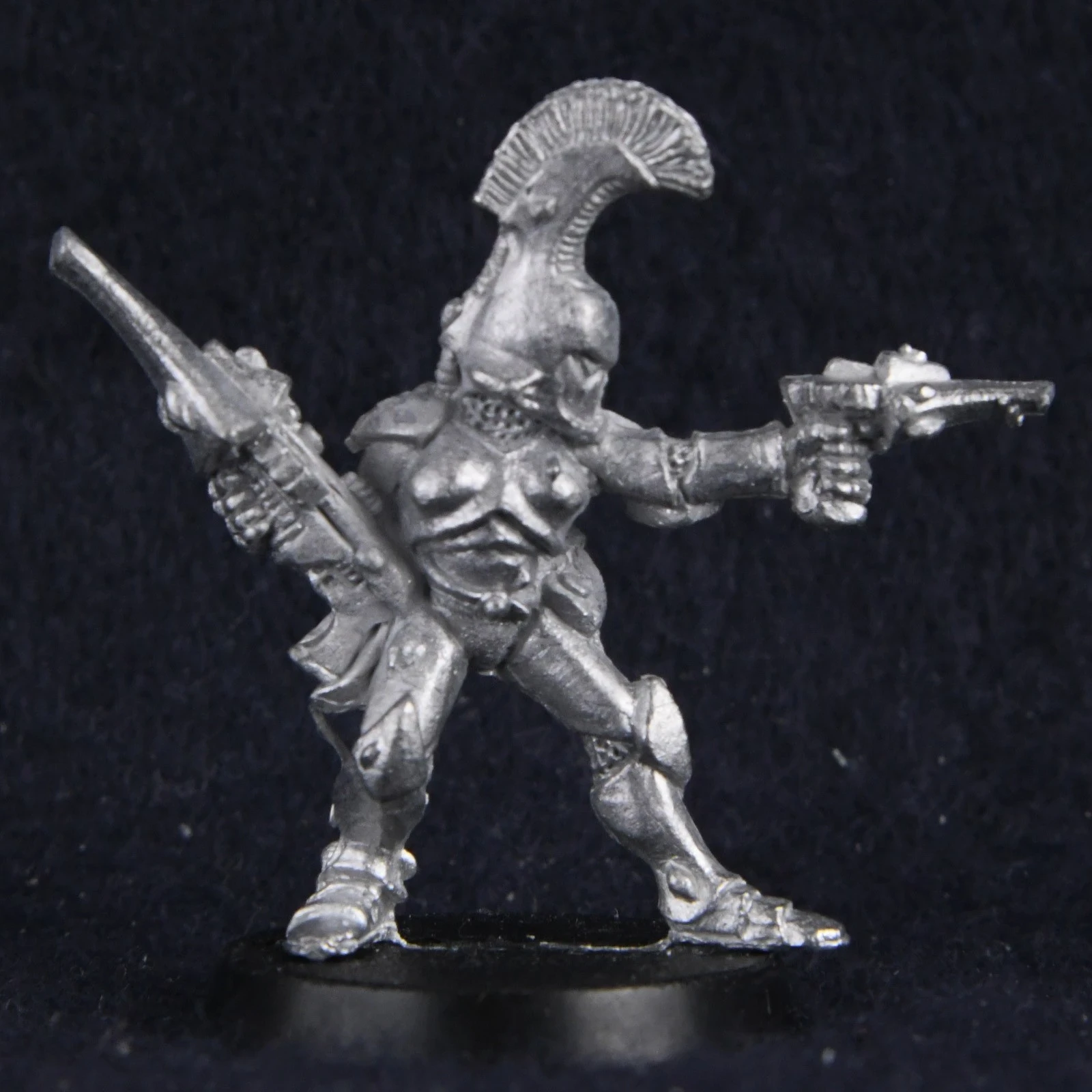 A more modern rendition of Games Workshop's long out of production Eldar Guardian Defender (though possibly a proto-Dire Avenger). Being effectively space elves, they had to be tall and slim, with a stream-lined design. But they're also dirty dirty aliens so they couldn't have the same proportions as humans either.